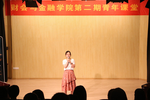“青年课堂”作为财会与金融学院的品牌特色活动,利用优秀的青年教师、学生等人士的人生经历去引发广大财金学子对于人生的思考,引导青年学生树立正确的价值观,使广大学子能够更好地走向成功之路。