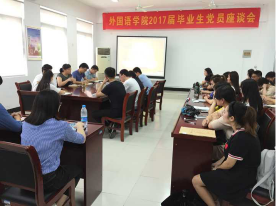座谈会开始,郝亮首先代表外国语学院党总支向全体毕业生党员介绍了此次座谈会主要内容。
