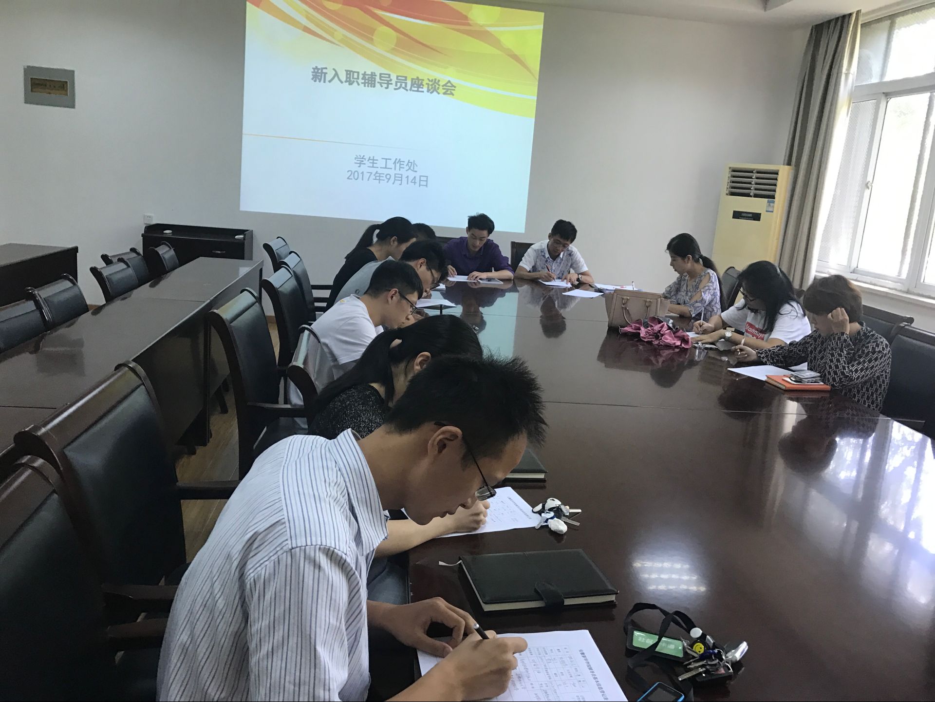 本网讯(通讯员:王强亚)9月14日上午,威尼斯官网在招生办会议室召开新入职辅导员工作座谈会。全体新入职辅导员及学生处相关人员参加会议。