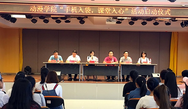 本网讯(通讯员:汪明天)为维护正常的教学秩序,严肃课堂纪律,提高课堂教学质量和效率,动漫学院创建“无手机课堂”,实施“课堂无手机工程”。9月19日,动漫学院在大学生活动中心举办了"手机入袋、课堂入心"活动启动仪式。动漫学院副院长许存福、朱诵贵、实习实训主管、学管秘书、艺术系教研室主任、全体辅导员、华信智原市场运营部经理宋家言以及动漫学院近400名学生代表参加活动。
