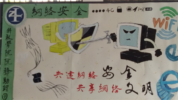 自9月18日起,科技学院LED显示屏滚动播出的安全标语,主题海报提醒着师生时刻注意网络安全;助理团、学生会官方QQ微博及时推送网络安全隐患案列、网络安全应对方法及相关法律法规。