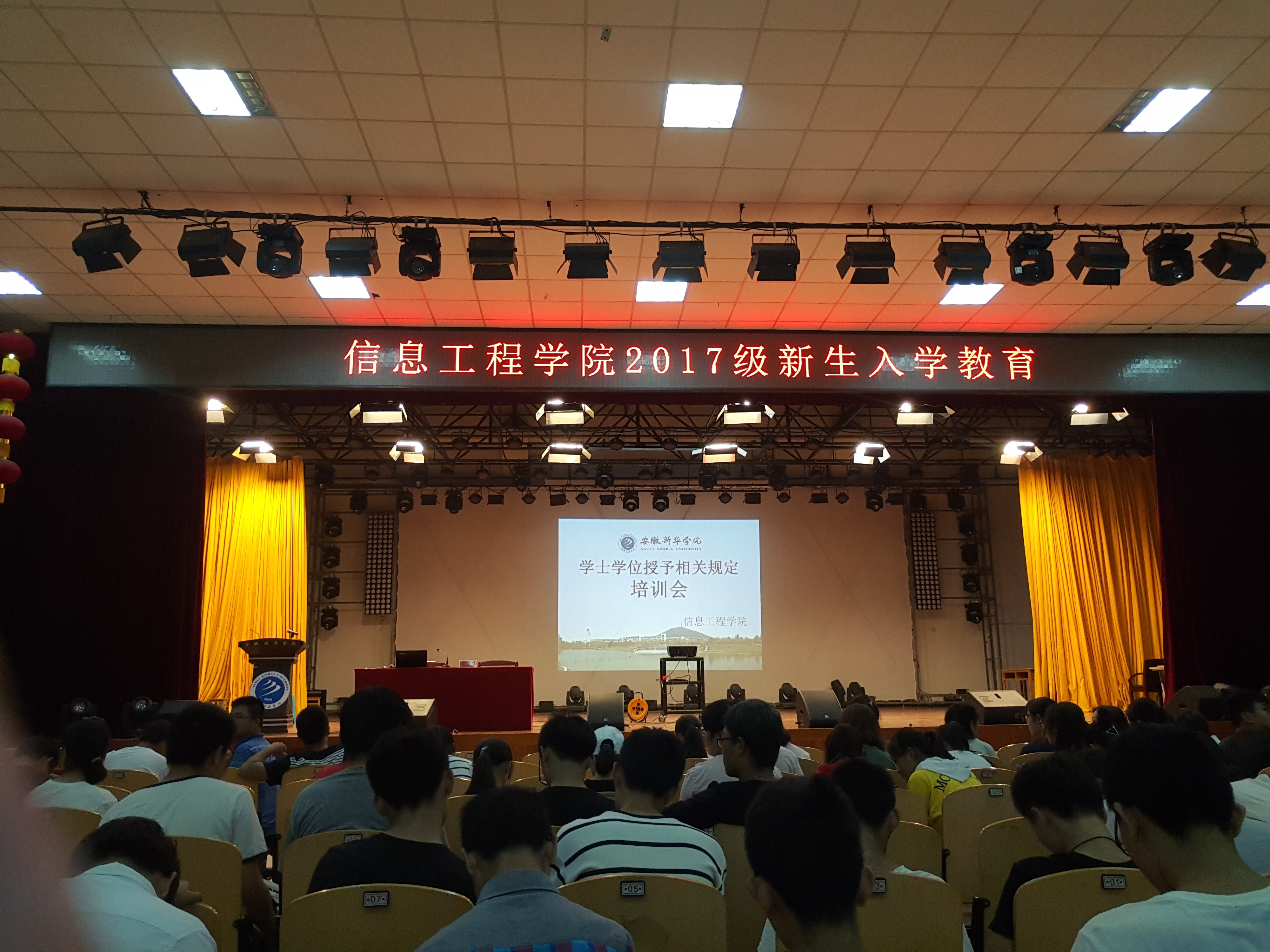 为加强2017级本科生教学工作的规范化、系统化和制度化建设,同时加强学生管理工作,9月19 日下午信息工程学院组织安排了教学秘书为2017级本科生详细地介绍了学士学位条例和辅修制双学位制度。此次讲解使2017级本科生明确了四年的学习任务和目标,同时也帮助他们顺利完成学业打下了基础。