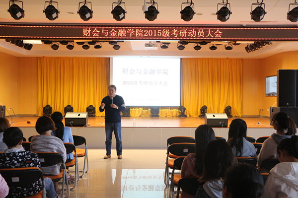 此次考研动员会的召开,不仅为2015级备考研究生的学生们分析了方法、指明了方向,而且使学生们更加认清了考研形势,明确了考研步骤,同时也坚定了考研信念,更有利于财会与金融学院进一步加强学院学风建设,营造浓厚而积极的学习氛围。