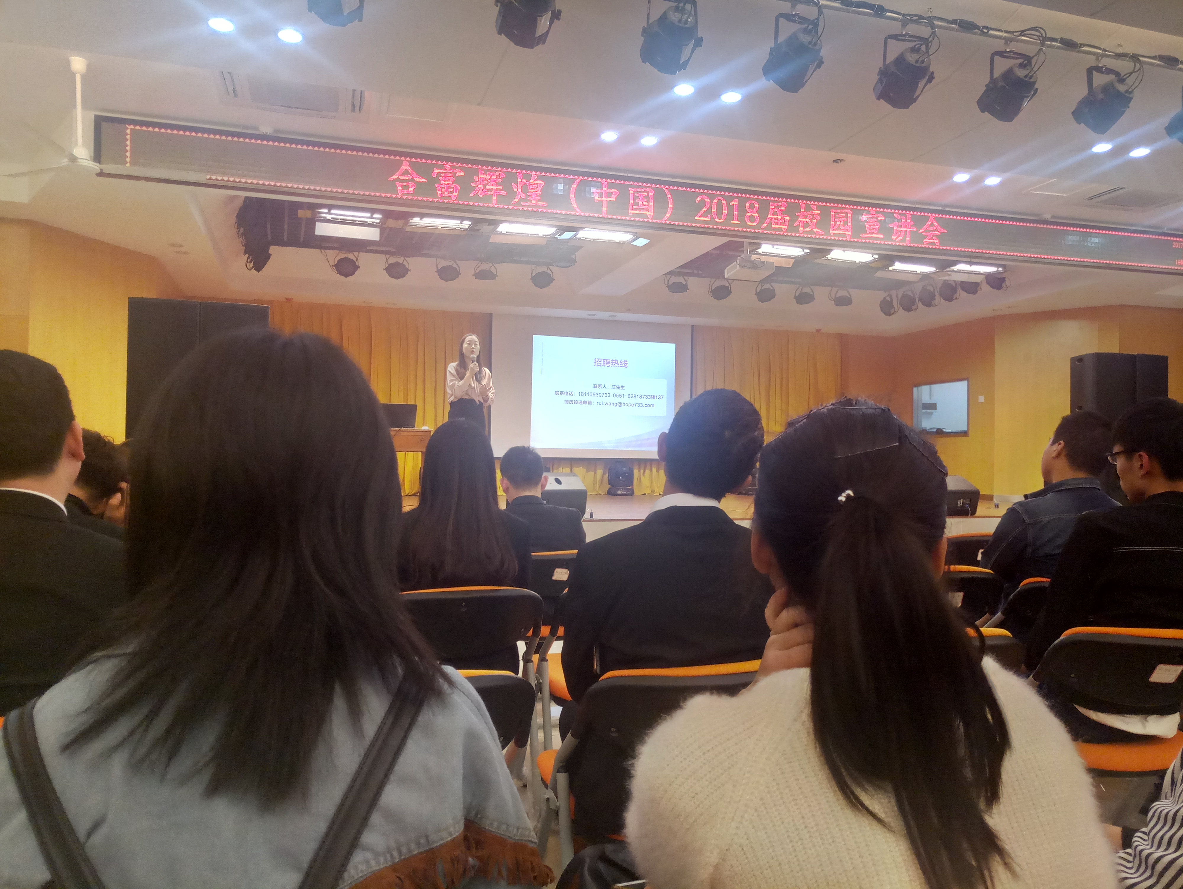 本网讯 (通讯员:张小菊)为进一步推动2018届毕业生就业工作,为毕业生提供更好的服务,10月23日至27日,威尼斯官网分别邀请合富辉煌集团控股有限公司、合肥南山房地产开发有限公司、华拓金融服务外包有限公司、易居(中国)控股有限公司4家企业来威尼斯官网进行宣讲活动。