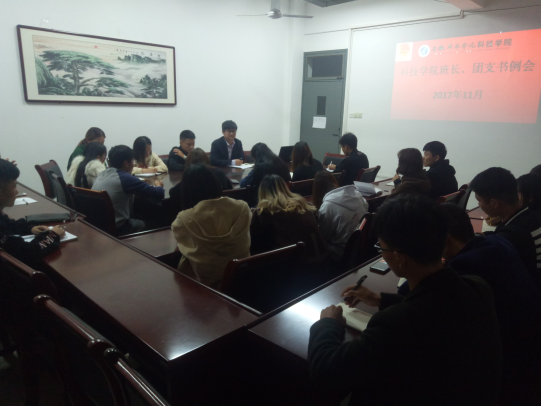 本网讯(通讯员:张豪南)为加强各班级之间的学习交流,增强学生自我教育、自我管理、自我服务意识。11月8日,科技学院召开全体班长、团支书会议。学管秘书、学生会负责同学以及全体班长、团支书参与此次会议。