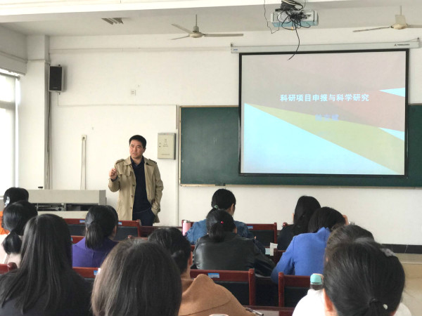 本网讯(通讯员:庄小云)为促进教师教科研水平的提升,商学院分别于11月3日下午、11月8日下午举办以《教学类项目申报与教学研究》、《科研项目申报与科学研究》为主题的系列专题讲座,讲座由商学院院长陆克斌主讲,商学院全体教职工聆听了讲座。