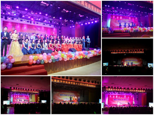 本网讯(通讯员:崔风波)为庆祝商学院成立十三周年,欢迎2017级新生加入商学院大家庭,11月27日晚,商学院在校大礼堂举办十三周年庆暨“相约商院 情满华园”迎新晚会。相关校领导,教学质量监控办公室、保卫处、学生处、教务处等行政部门,商学院领导及安徽非羽网络科技股份有限公司相关负责人和来自全校近1000余名学生共同观看了演出。