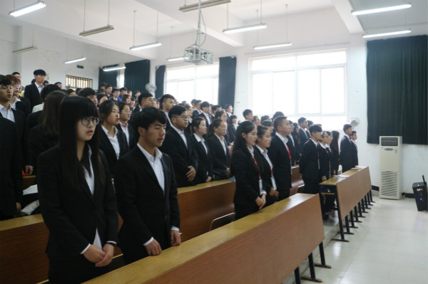 参赛代表钱三超从对比赛的认识和对学习十九大精神两个方面,阐述了作为团员青年,应当积极学习党的理论知识,熟知理论内涵,丰富自我,提高认识。随后,由组织部全体成员为大家带来手语操表演《国家》。