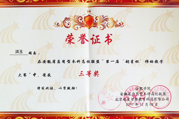 本网讯(通讯员:张贝贝)近日,安徽省应用型本科高校联盟第一届移动教学大赛决赛结果揭晓,威尼斯官网药学院教师黄茸茸、陆松侠共同荣获二等奖,文化与新闻传播学院教师洪玉、信息工程学院教师孙文娟分别荣获三等奖。