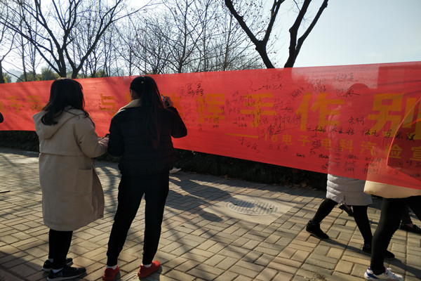 首先,辅导员吴风婷介绍了本次活动的目的,并以过往事例作为教材,向学生说明了考试作弊带来的严重后果。随后结合《学生手册》的相关规定,希望广大学生能够严格遵守校纪校规,严于律己,将诚信常记于心,杜绝一切舞弊行为。最后,2016级学生代表蔡子翔带领全体学生一起宣读诚信考试承诺书,并有序地在“与诚信携手同行,与舞弊挥手告别”的横幅上签字承诺。