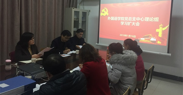 本网讯(通讯员:马兰)1月16日下午,外国语学院党总支在党员活动室召开中心理论组学习扩大会议,认真学习领会习近平新时代中国特色社会主义思想,坚定维护以习近平同志为核心的党中央权威和集中统一领导,全面贯彻落实党的十九大各项决策部署。会议由外国语学院党总支书记邵玲主持,外国语学院党总支委员、各教师支部书记、各学生支部书记参加了学习会。