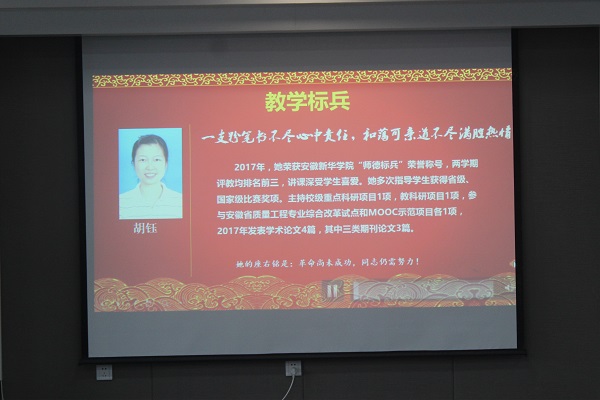 随后,王志宏宣读《关于表彰外国语学院2017年标兵教职工的决定》。全体教职工一起观看了在教学、科研、学生竞赛指导、工作贡献、工作创新、学生工作、党务工作等方面做出突出贡献的13位获奖教师的颁奖词。