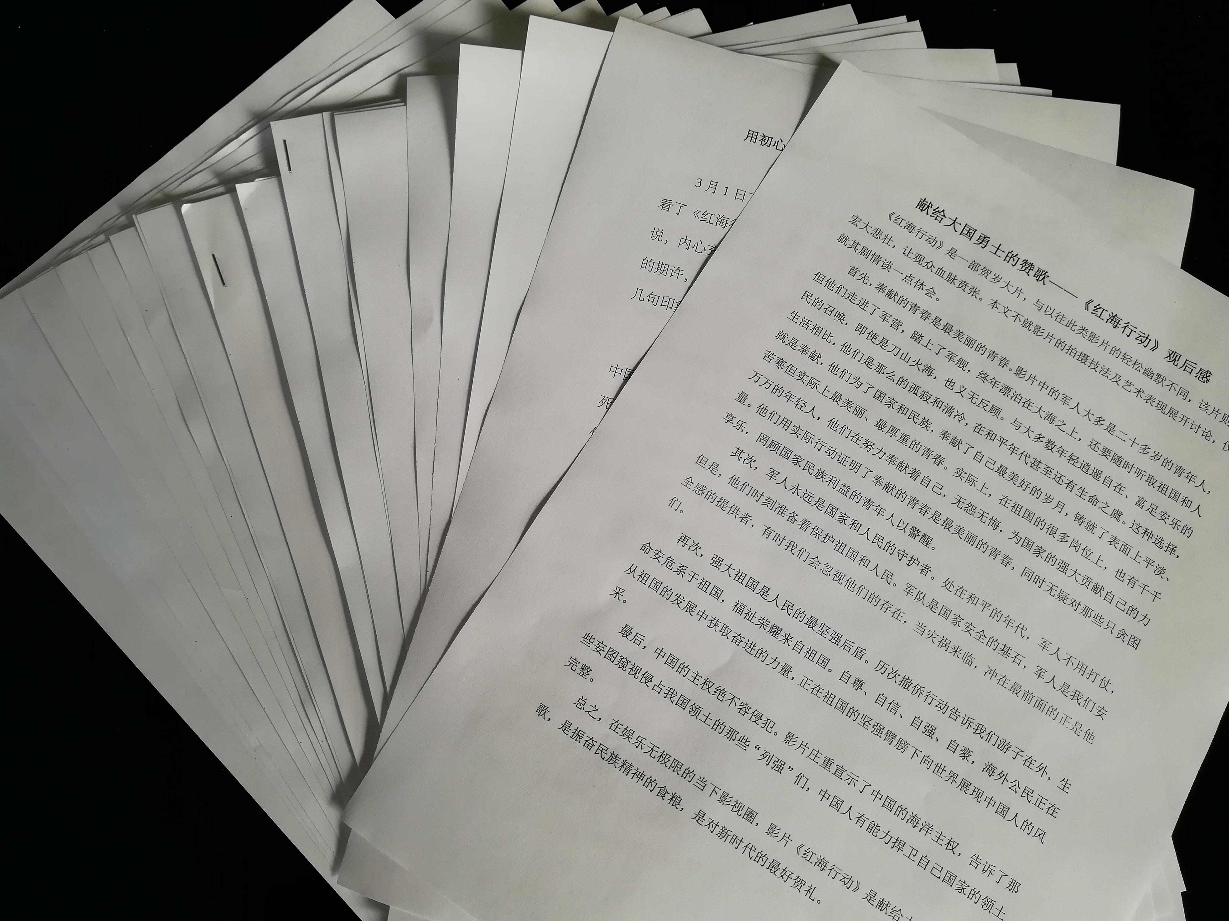 观影结束后,党员教师们感触颇多,撰写观后感并纷纷表示,位卑未敢忘忧国,站在新时代里,要以党的十九大精神为指引,把爱国热情转化为实际行动,在工作中敢于亮剑、敢于担当,积极进取、顽强拼搏,为学校的发展贡献自己的一份力量。