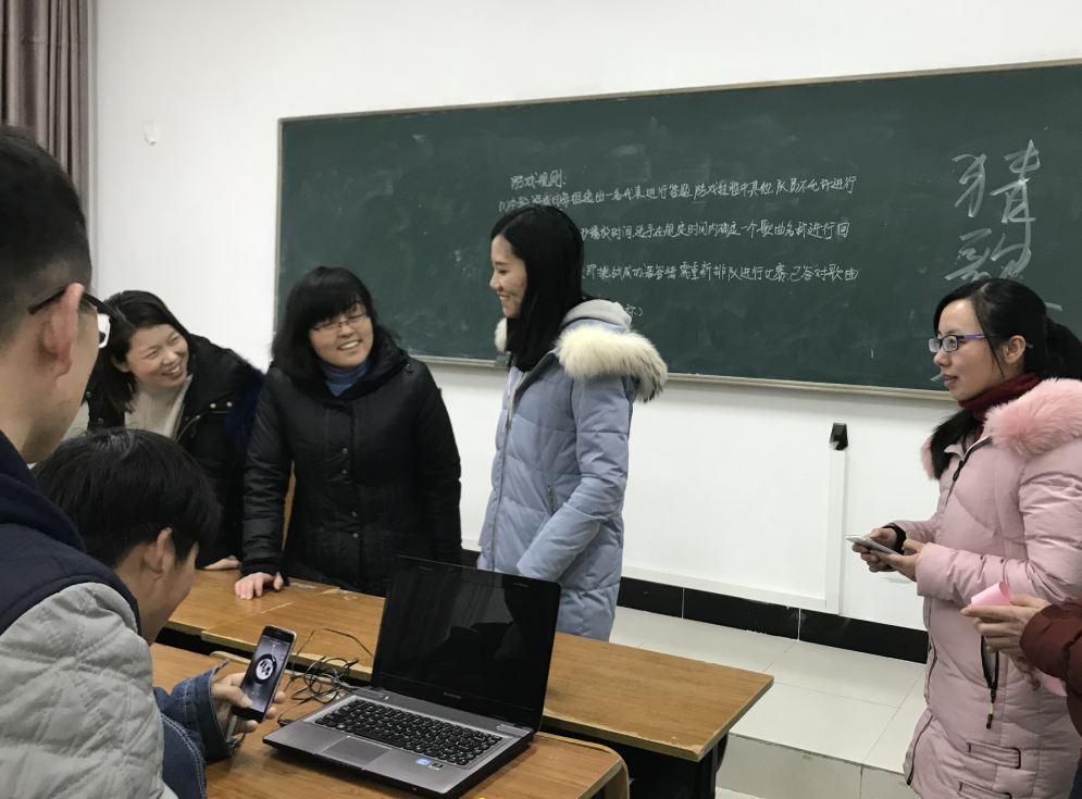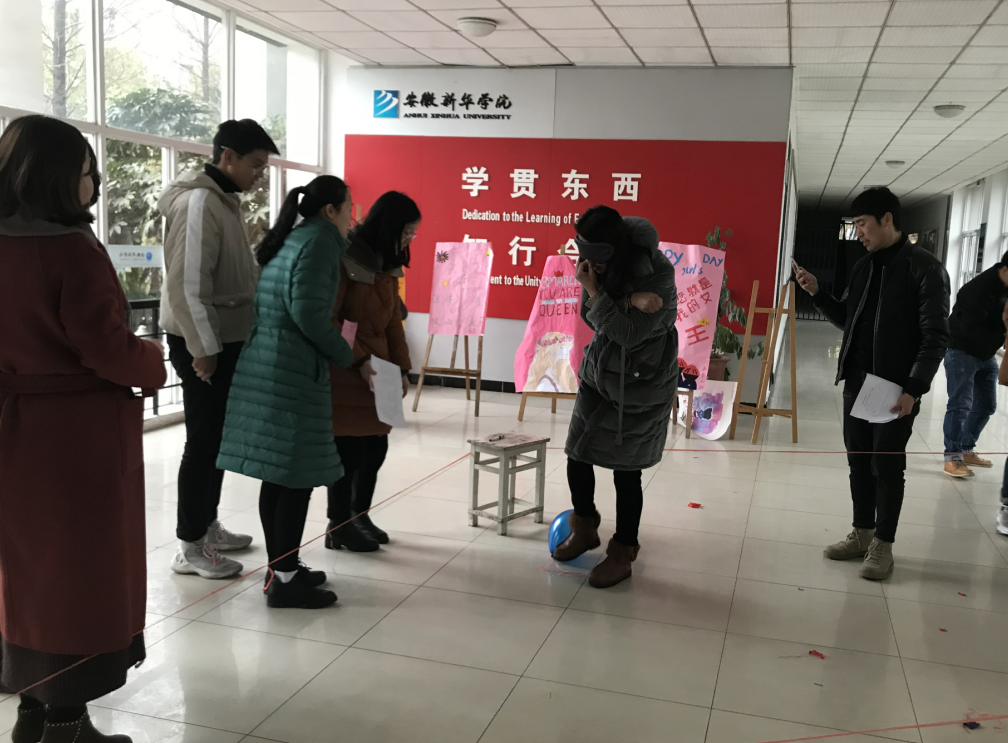 女教职工们通过“蒙眼踩球”“你画我猜”“单词接龙”“中英文歌曲一起猜”活动,跳一跳、踩一踩、猜一猜、画一画、乐一乐。团队比赛邀请了部分男教师参加,协助女教师更好地完成比赛项目。赛后,外国语学院为获奖的参赛队伍颁发了奖品。