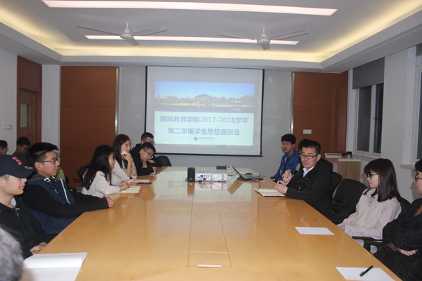 座谈会上,学生们围绕十九大精神,就自身的成长如何与建设国际化、高质量、有特色的国际教育学院相融合,畅谈自己的所思所想。同时,学生还共同交流了班级学风情况、假期以及开学后同的状态以及对国际教育学院工作的意见建议。