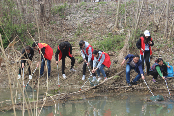 启动仪式后,青年志愿者们与社区党员开展垃圾清扫志愿服务活动。国际教育学院志愿者们和老党员们一起对辖区河面上漂浮的杂草枯枝和塑料饭盒等垃圾和河坡上的垃圾进行清理。在清理河道的同时,他们积极向沿河游玩的市民进行环境保护宣传。