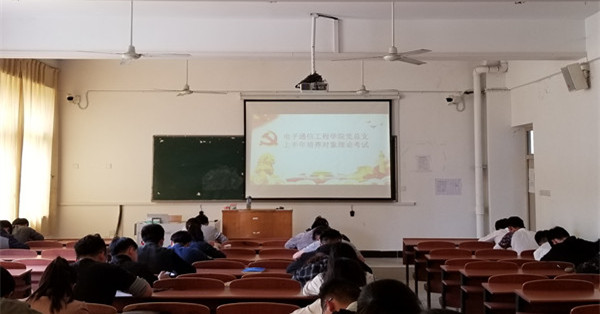 座谈会开始前,为帮助本次45名培养对象进一步提高理论知识水平,了解时事热点,电子通信工程学院党总支组织了一次理论考试。考试内容主要包括对党的性质、宗旨等基础知识和习近平新时代中国特色社会主义思想内涵的理解等内容,通过学生答题情况,进一步强化学生培养对象的党性修养,夯实电子通信工程学院党员发展的基础。