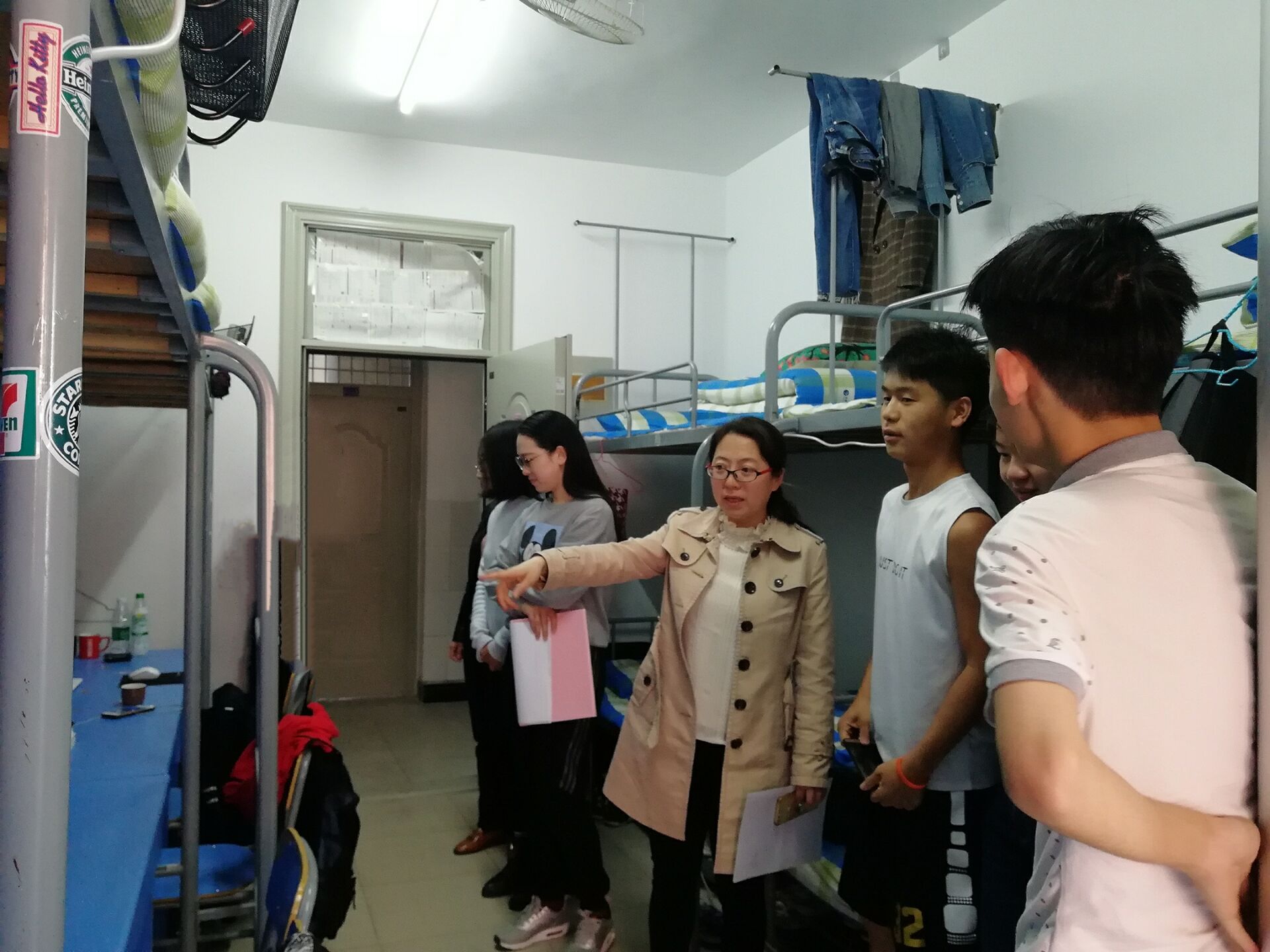 本次检查围绕宿舍内务整理、安全隐患排查、垃圾袋装化等进行。检查发现,台上堆放杂物、电源接线板乱放等问题。学工人员对宿舍存在的安全隐患做了详细记录,并现场进行整改处理;对于卫生较差的宿舍现场指导学生整理打扫。检查过程中,学工人员开展了春季传染病的预防宣传工作,引导学生养成良好的卫生习惯和健康的生活习惯,提高身体素质。