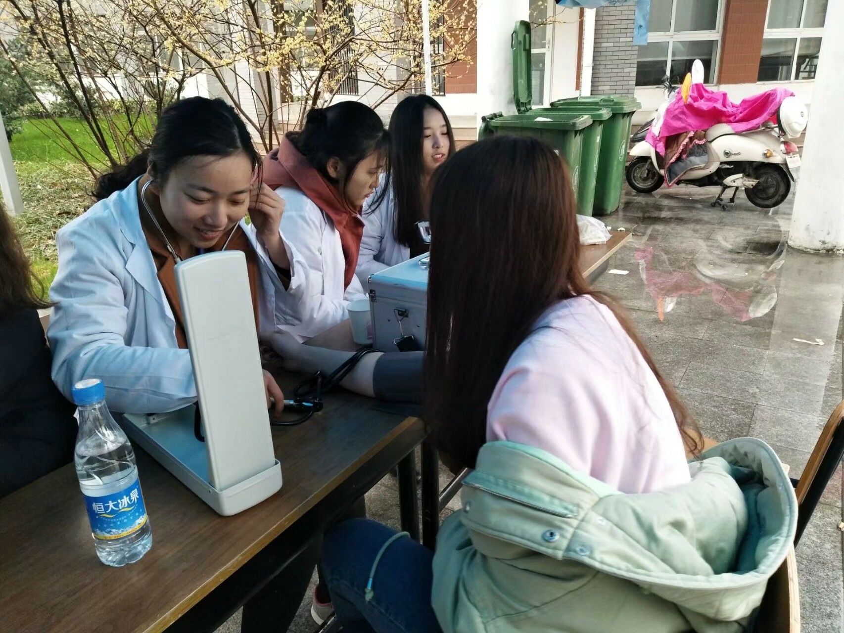 3月7日女生节,药学院团总支学生会结合专业特色,为校内女生免费检查血压血糖。身着白大褂学生们坚守在服务台,风雨挡不住大家的热情。