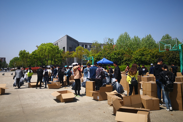 本网讯(通讯员:解寒静)4月9日,学生处联合校服生产厂家在校篮球场为2017级新生发放校服,共发放校服6500余套。