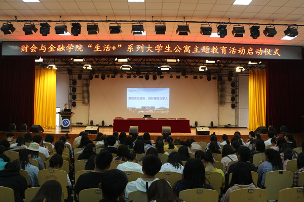 本网讯(通讯员:芮萍)为充分发挥学生干部在公寓管理工作中主动参与、朋辈互助的作用,4月11日,财会与金融学院在校大礼堂举行以“勇挑责任重担,做好寝室当家人”为主题的寝室长培训活动,主讲人为学生处处长助理齐军兵。财会与金融学院副院长窦梅朋、全体辅导员以及2016、2017级全体寝室长共800余人参加了此次活动。