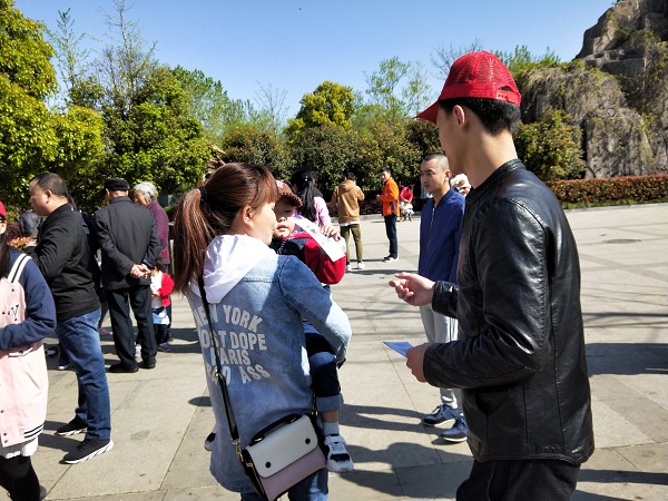 7号上午,“白手套”志愿服务队的学生集体前往野生动物园与高新区交警大队的工作人员集合,并在高新区交警大队的同志的指导下,为游客发放安全手册,提供帮助与咨询;文明劝导路人遵守交通规则。假期中,野生动物园周边游人人流量大,车辆密集,交通拥堵。志愿者在各自的责任区域内,有条不紊的维持道路交通和景区秩序。