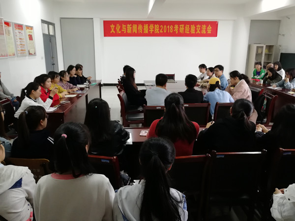 本网讯(通讯员:彭洪磊)4月25日,文化与新闻传播学院2018年考研经验交流会在会议室召开。2015级、2016级近80名学生聆听了分享。